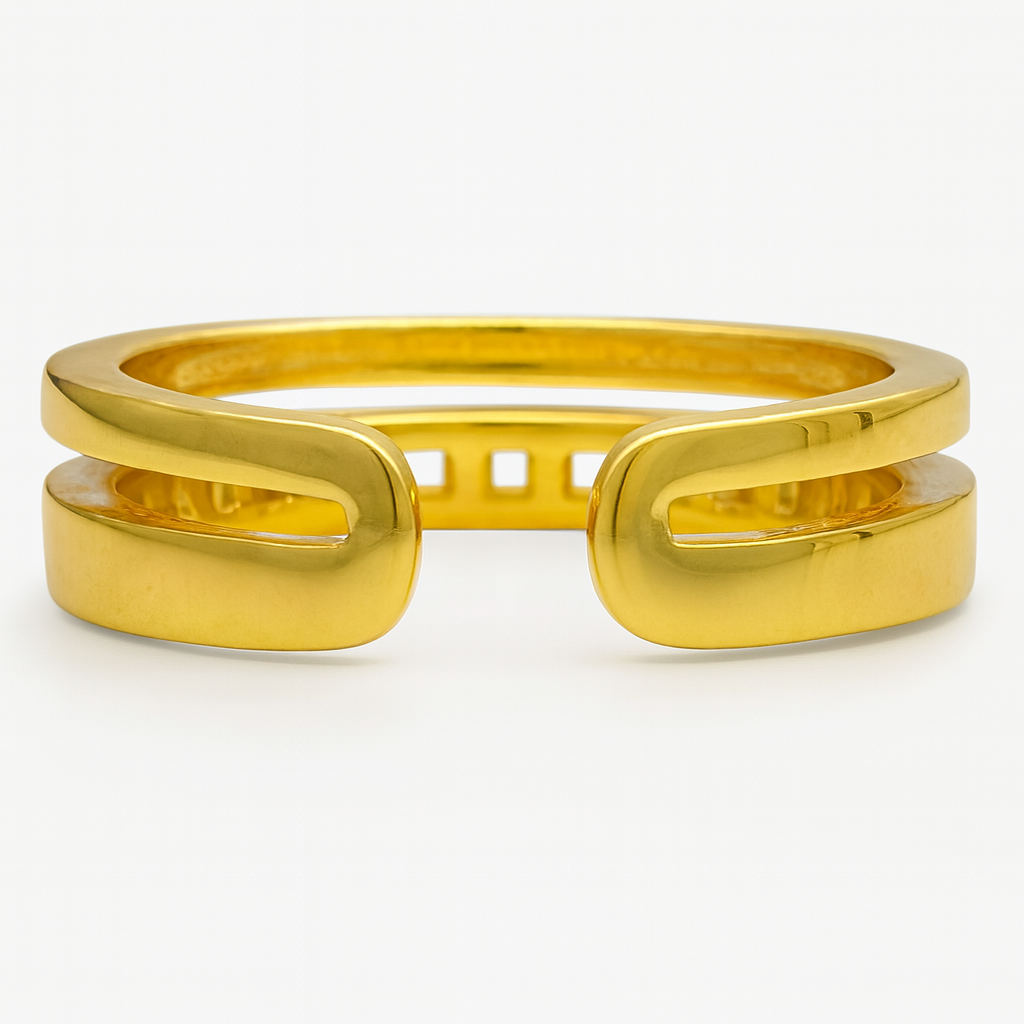 Brilla con elegancia y estilo en cada movimiento. Diseño doble con incrustaciones de circones que reflejan la luz con un toque sofisticado. Ajustable para adaptarse perfectamente a diferentes tallas de dedo.