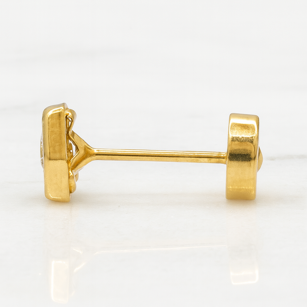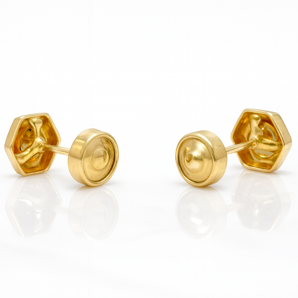 Elegante diseño geométrico en forma hexagonal con circón central brillante, ideales para bebés. Elaborados en oro macizo 18K y acompañados de tope de seguridad a presión en oro laminado 18K, ofrecen estilo, durabilidad y total comodidad. Hipoalergénicos y seguros, son perfectos para pieles sensibles, brindando un toque moderno y sofisticado desde los primeros meses.